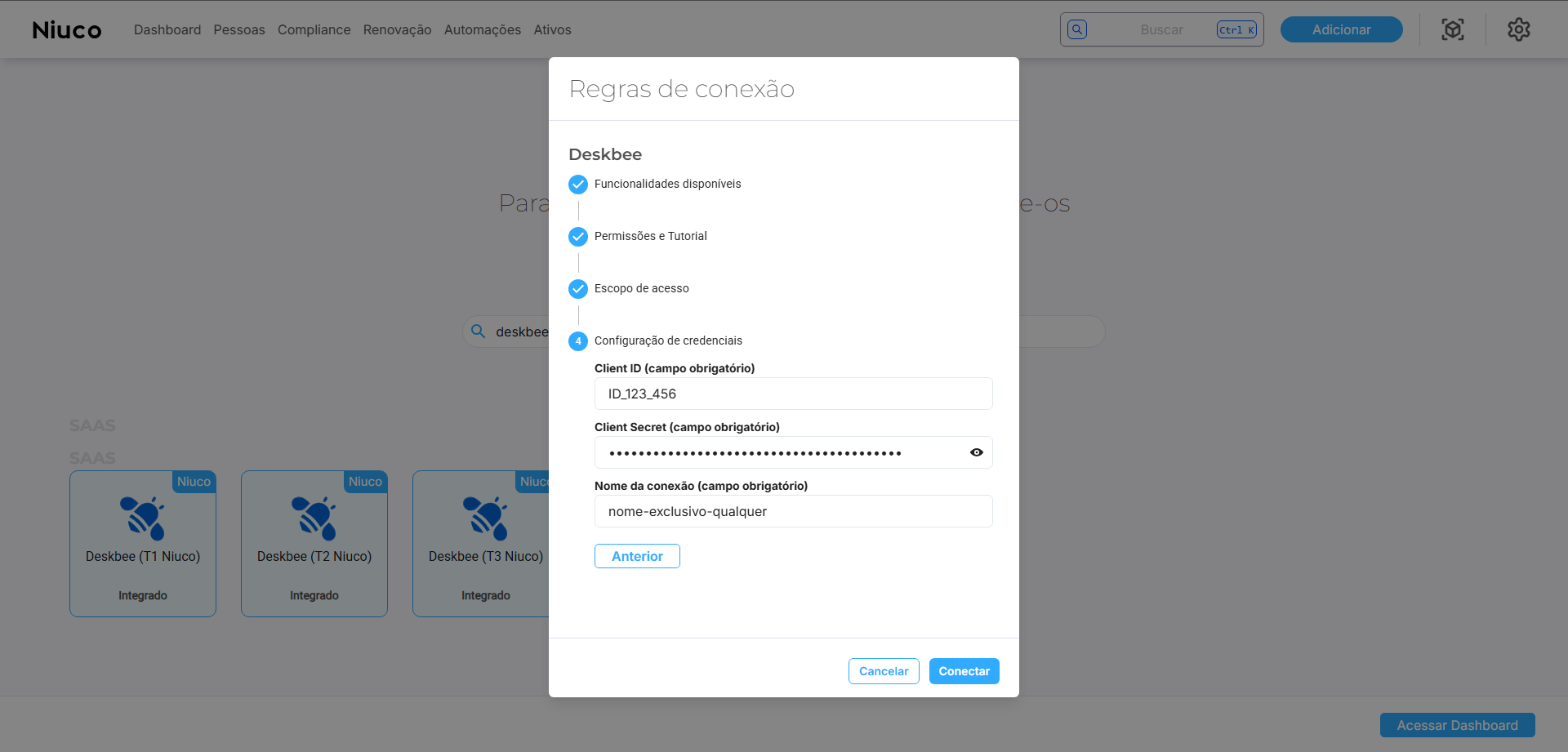 Tendo feito isso, clique em Conectar e pronto! Sua conexão com o Deskbee já será estabelecida em nossa plataforma.